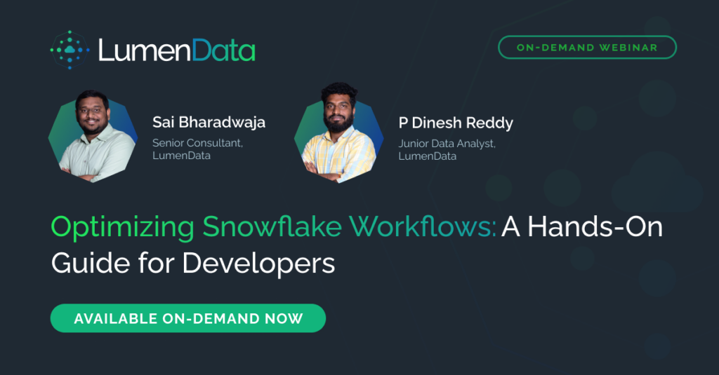 Watch LumenData’s exclusive webinar to explore how developers can build smarter, faster workflows in Snowflake. Explore practical techniques to optimize SQL, running ML models within Snowflake Native Apps.